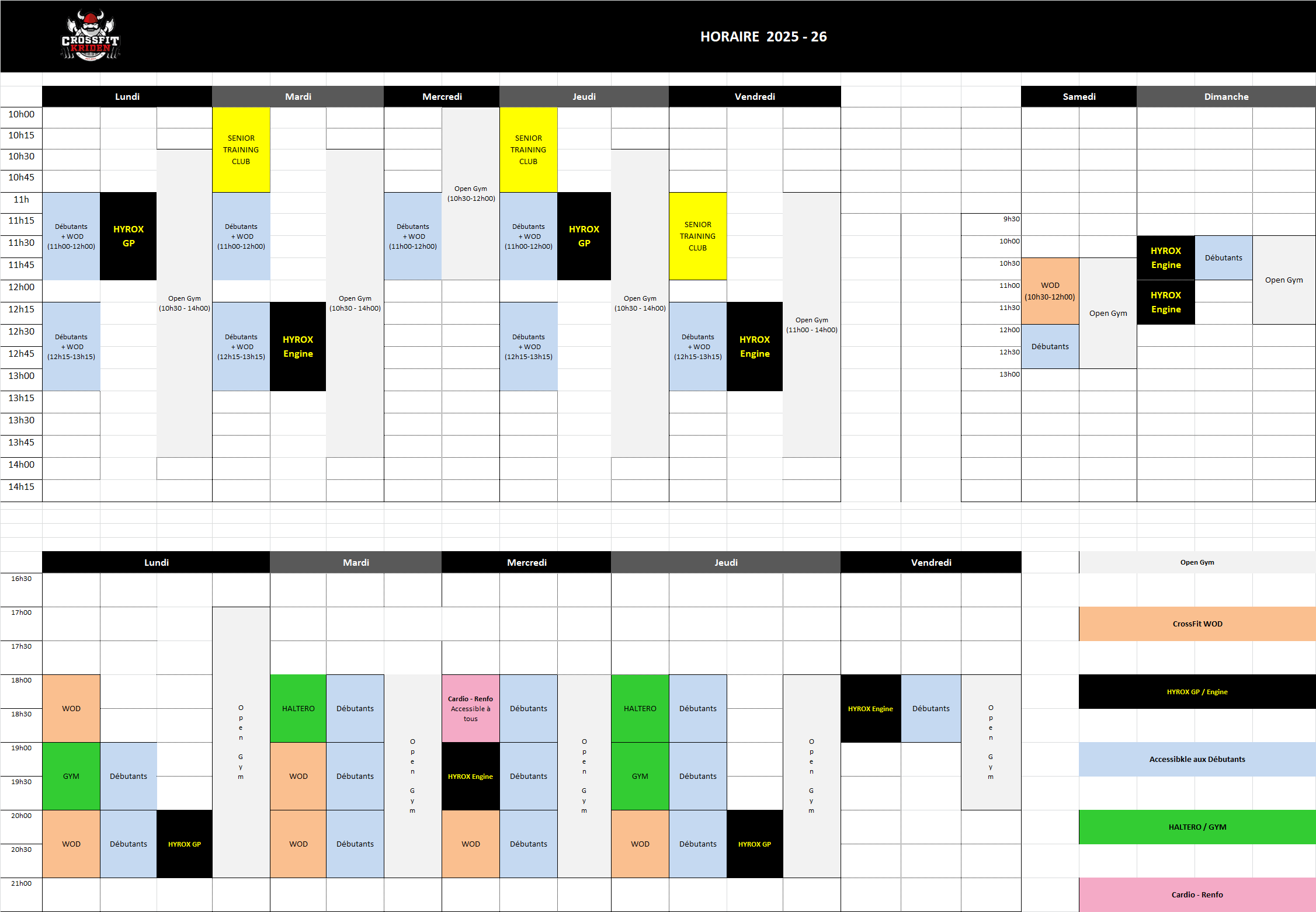!! Jours fériés : ouvert de 10h30 à 12h00 sauf 25.12 et 01.01  (WOD pour tous niveaux)