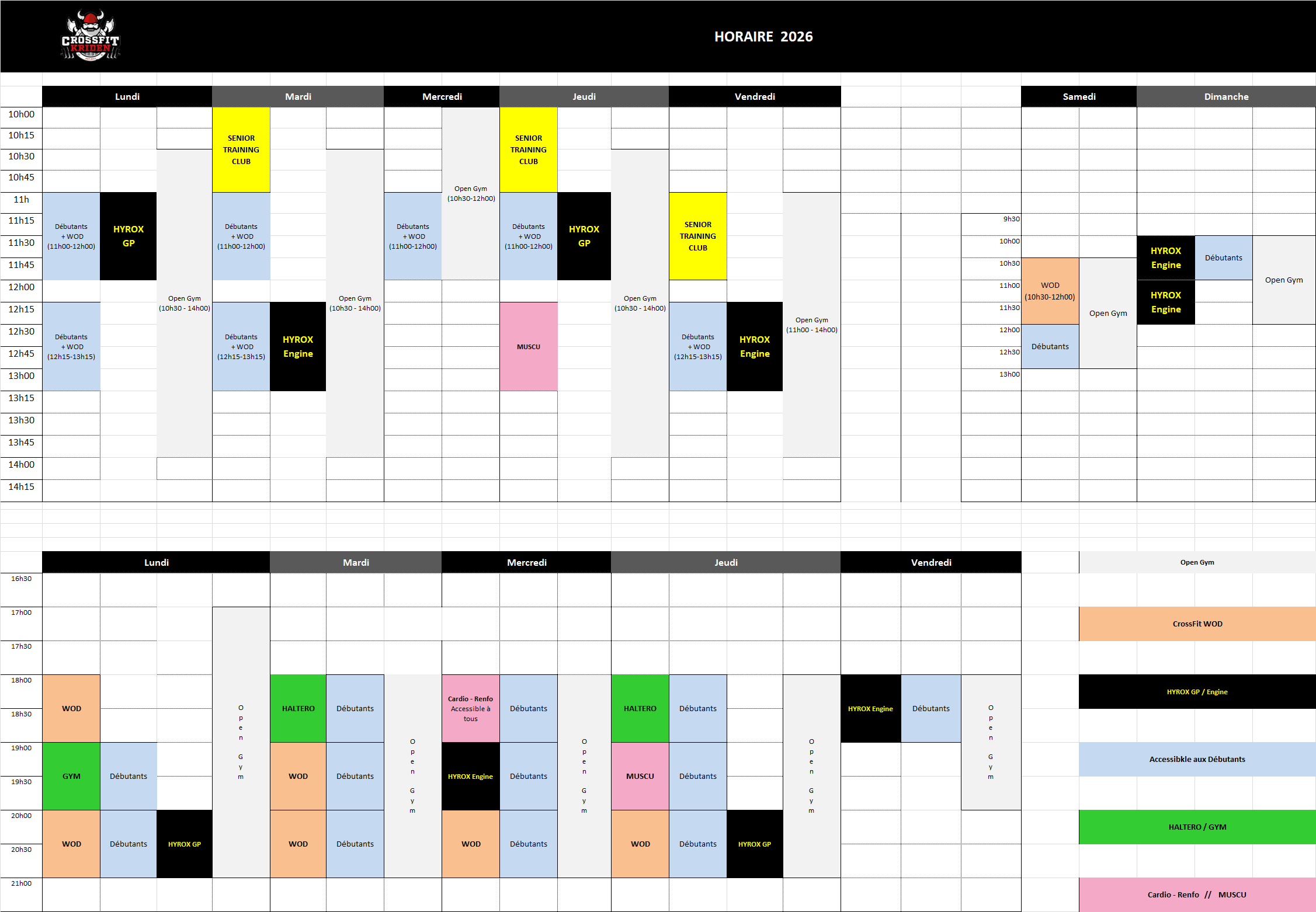 - OPEN Training / Open Gym : Horaire Open Gym